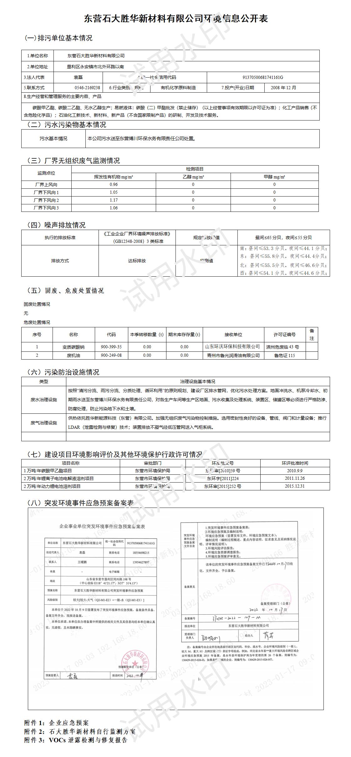 东营石大胜华新材料自行监测方案2023.docx