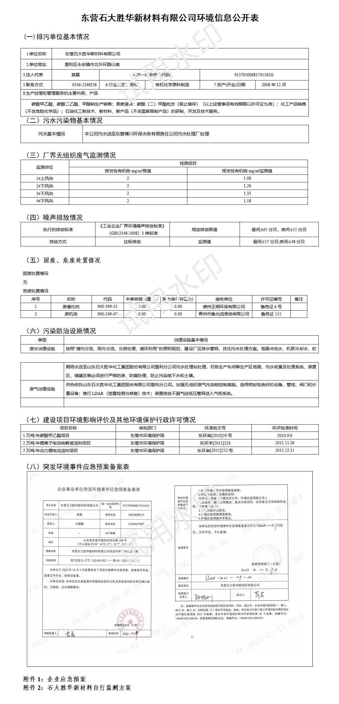 东营石大胜华新材料自行监测方案2023.docx