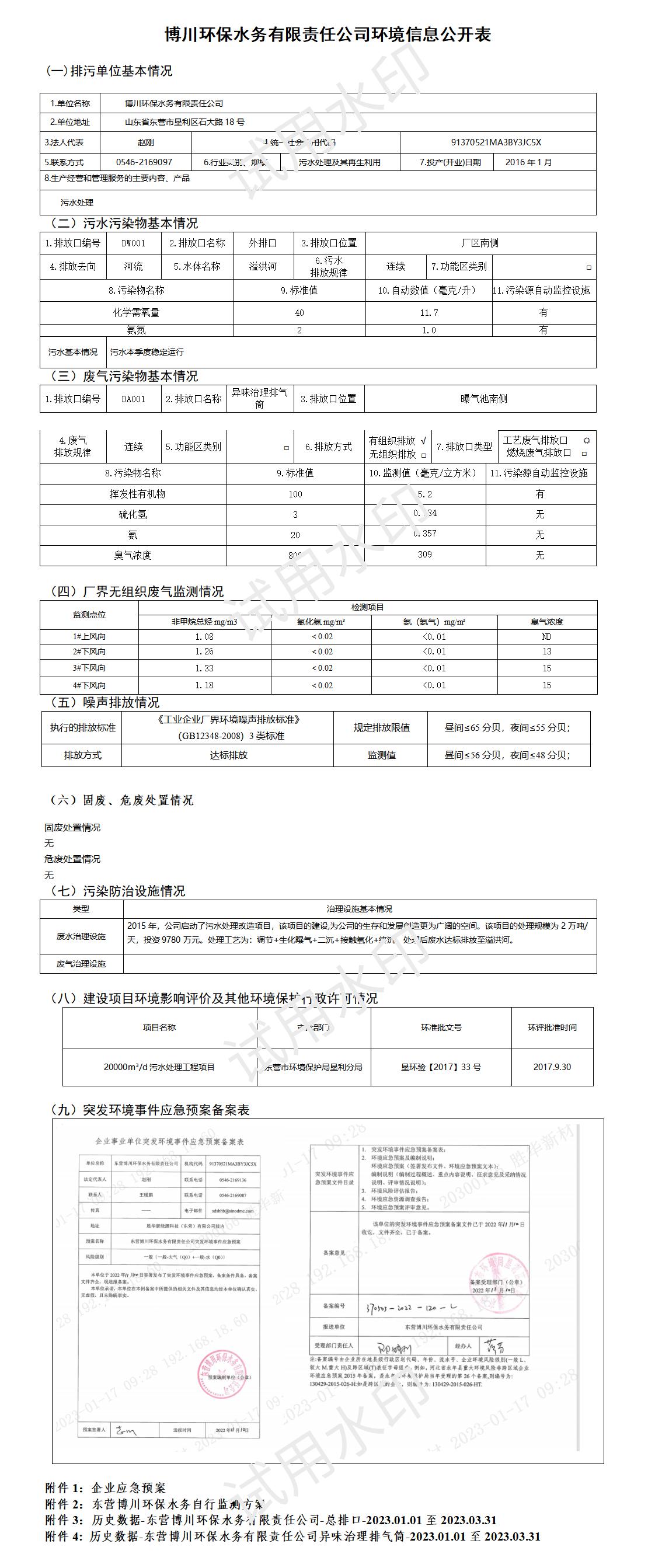 历史数据_胜华新能源科技(东营)有限公司胜华化工总排口_2023-01-01至2023-03-31.xls历史数据_东营博川环保水务有限责任公司异味治理排气筒_2023-01-01至2023-03-31.xls1东营博川环保水务有限责任公司-环境应急预案.pdf东营博川环保水务有限责任公司自行监测方案2023.docx